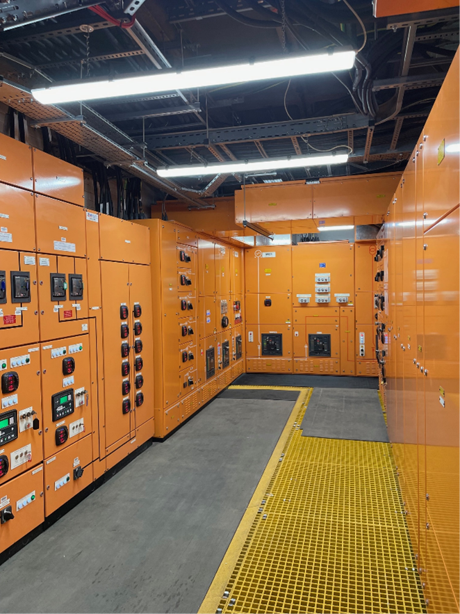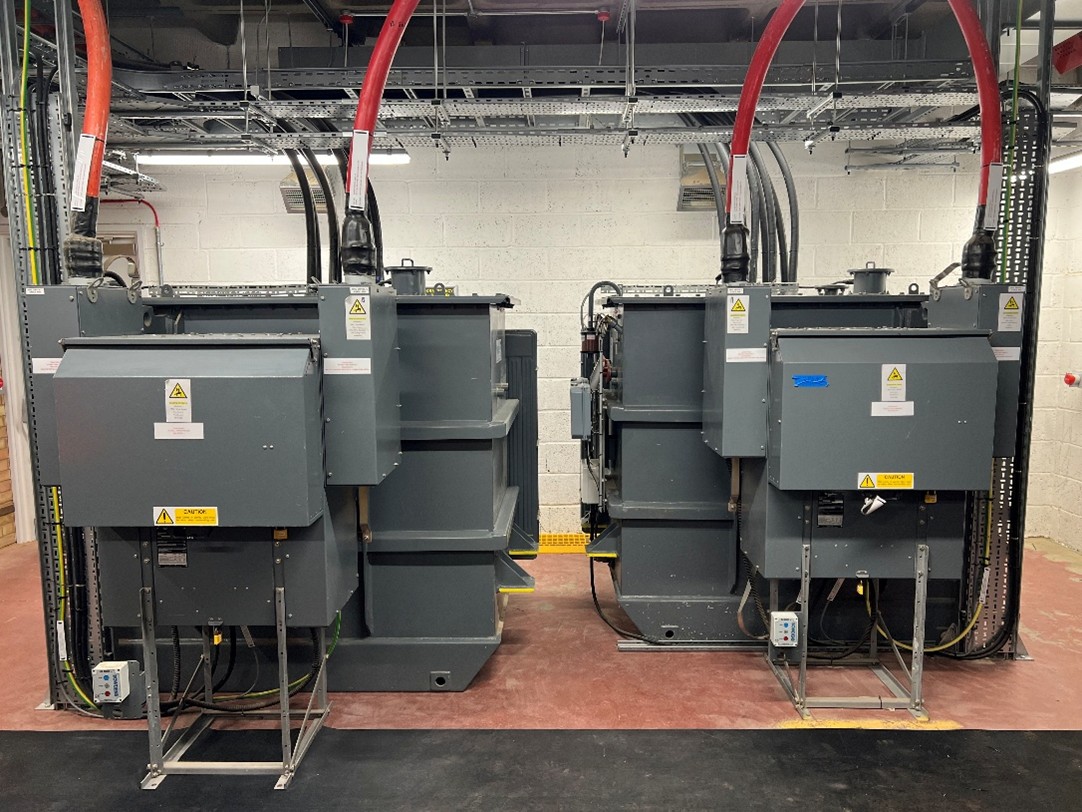 The sub-station and Switchrooms now comprise of an HV sub-station containing the 4no 1250KVA transformers with close coupled ring main units. These are connected to 2no HV rings affording additional resilience.